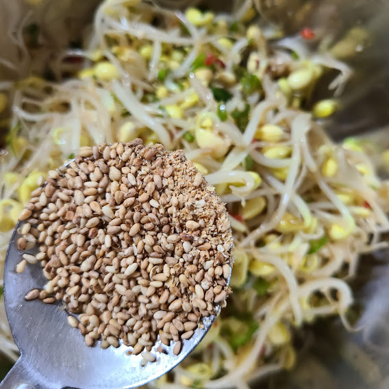 참기름 1큰술 깨소금 1큰술 넣어서 마무리합니다.
