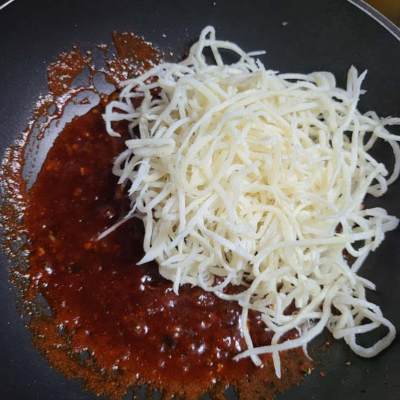 (간장 1큰술, 맛술 2큰술, 고춧가루 1큰술, 고추장 2큰술, 설탕 2큰술, 올리고당 1큰술)