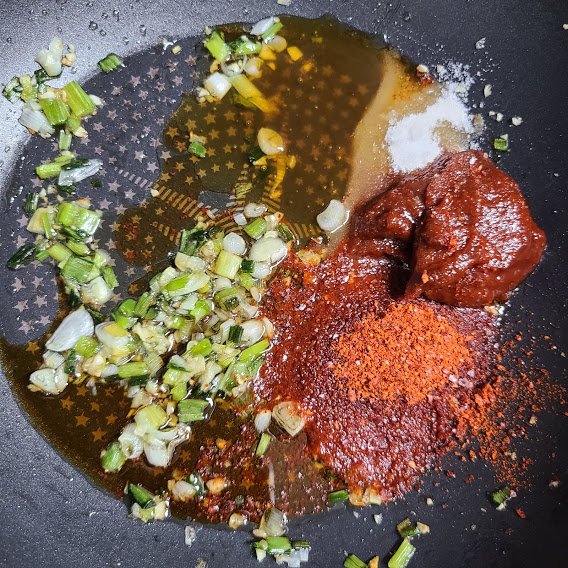 식용유 2큰술 두르고 준비한 파 넣고 볶아주고