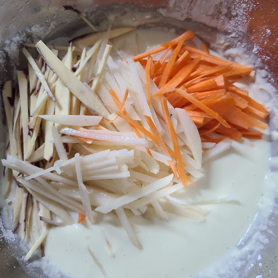 쑥, 양파, 당근, 감자, 고구마 준비합니다.