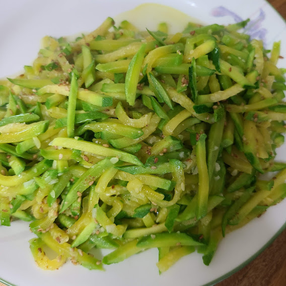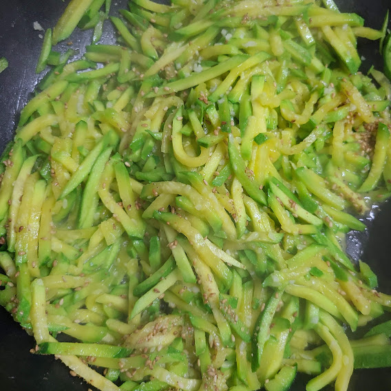 깨소금 1큰술 뿌려서 외호박 볶음 마무리합니다.