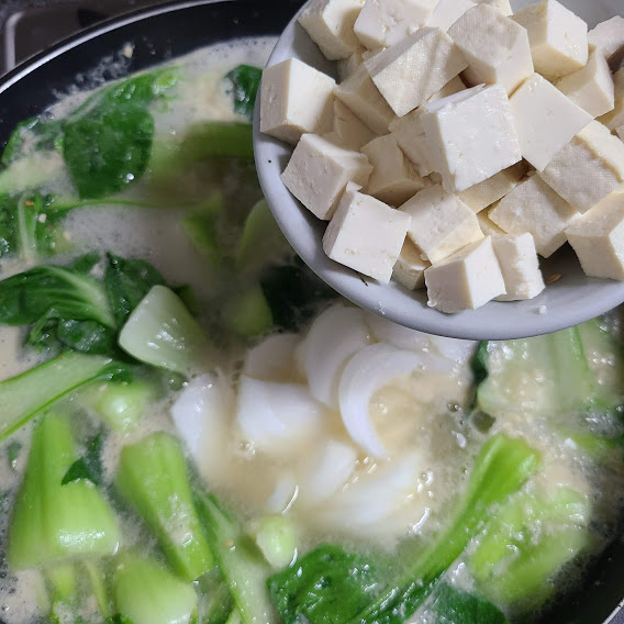 두부 양파 넣고 끓여줍니다.