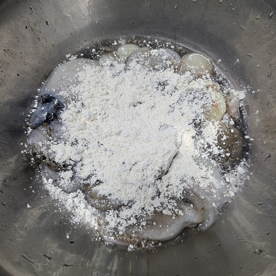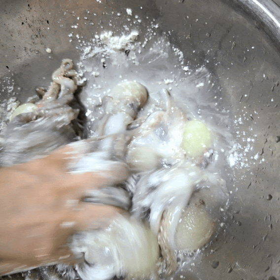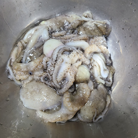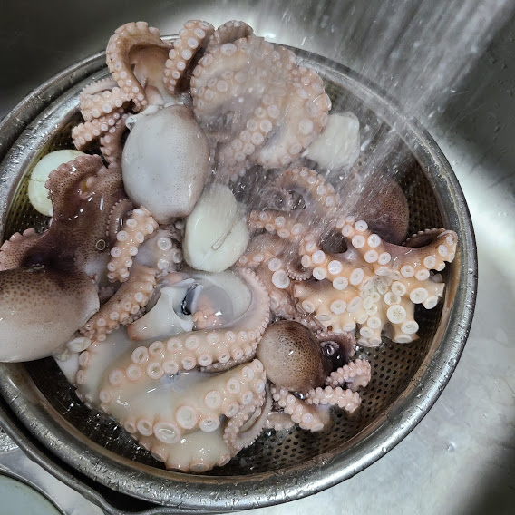 대친 주꾸미는 찬물에 헹구어 줍니다