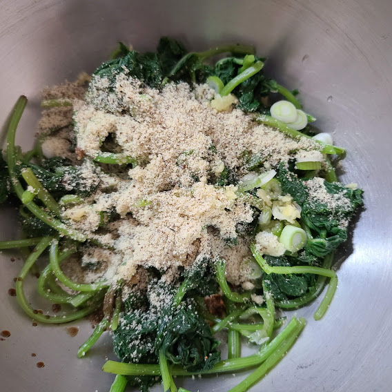 들기름 1큰술, 들깻가루 1큰술 넣어줍니다.
