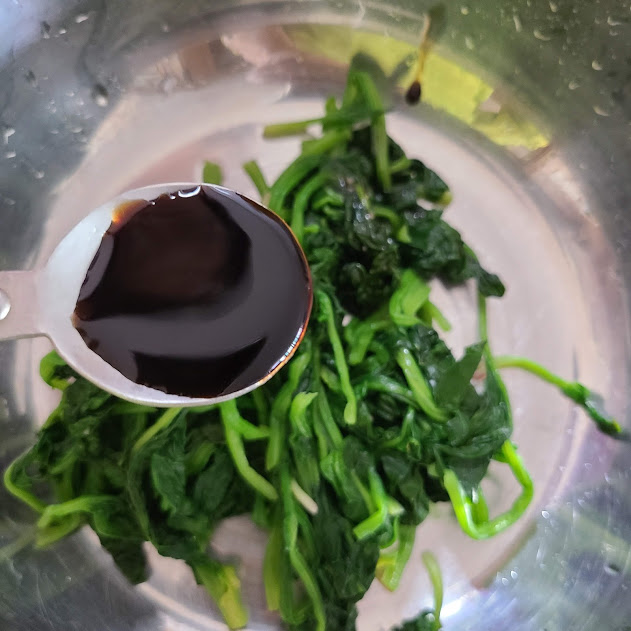 시금치는 간장 1작은술 넣고