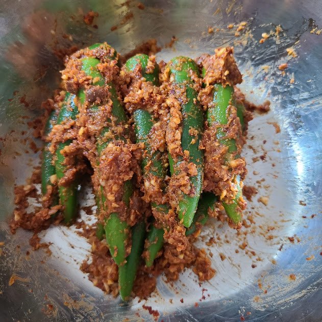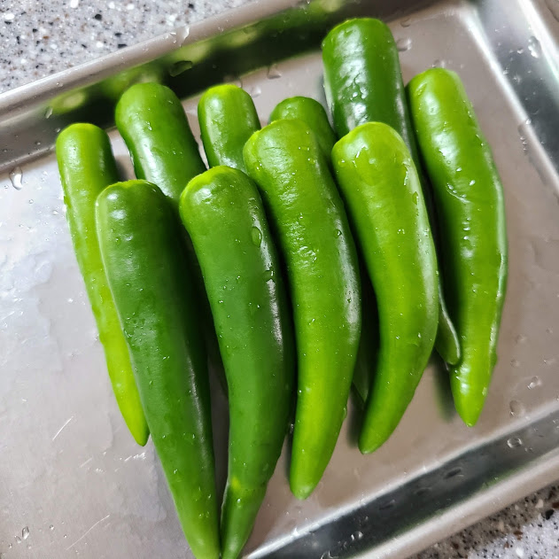 고추 꼭지 따고 깨끗이 씻어서 준비합니다.