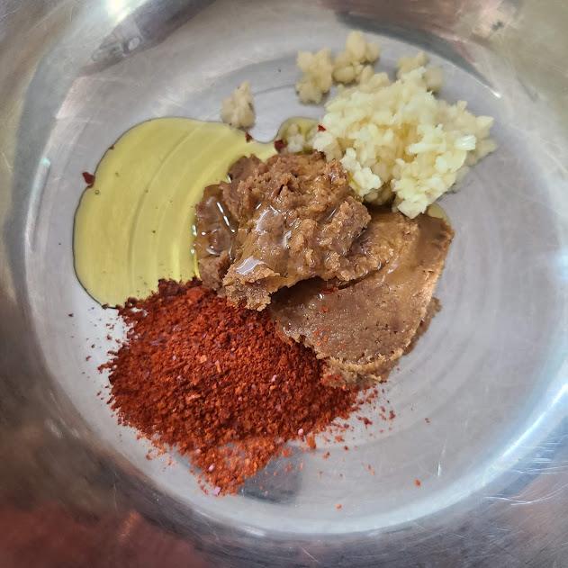 고춧가루 1작은술, 다진 마늘 1큰술, 들기름 1큰술