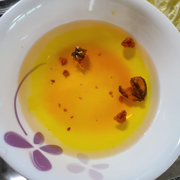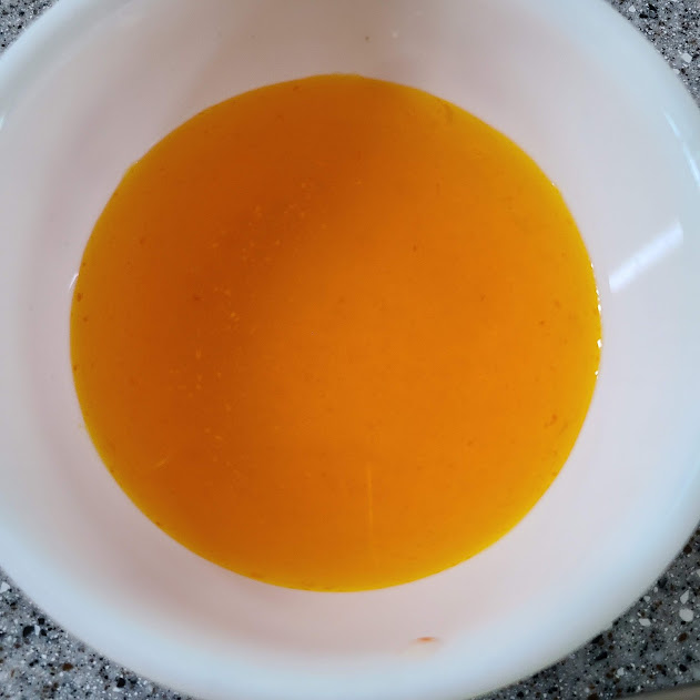 치자 물을 우려내어 준비합니다. (선택 재료, 치자 없으면 생략)