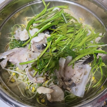 아귀 1마리, 미나리 한줌, 콩나물 , 파채