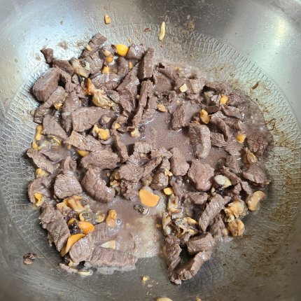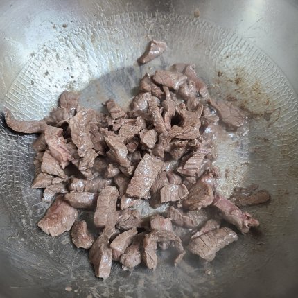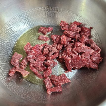 참기름 2큰술 두르고 소고기 볶아줍니다.