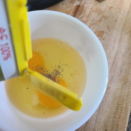 계란은 소금 조금, 후추 톡톡 넣어서 풀어서 준비합니다.