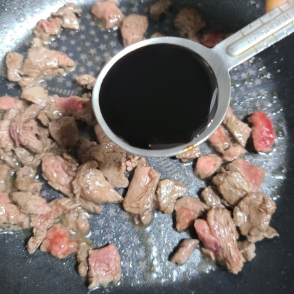 어느 정도 볶아 주고 국간장 1큰술 넣고 볶아 줍니다.