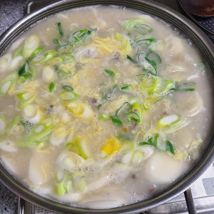 오늘은 돼지고기 만두에 사골 곰탕국물을 넣어서 떡국을 끓였더니 정말 구수하고 설날 떡국으로 손색없어요