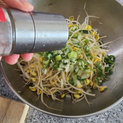 일반적으로 콩나물 무침할 때 국간장 또는 액젓으로 콩나물 무침 만들 때도 있는데 오늘은 깔끔하게 소금으로 무침 만들었어요