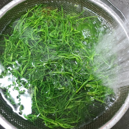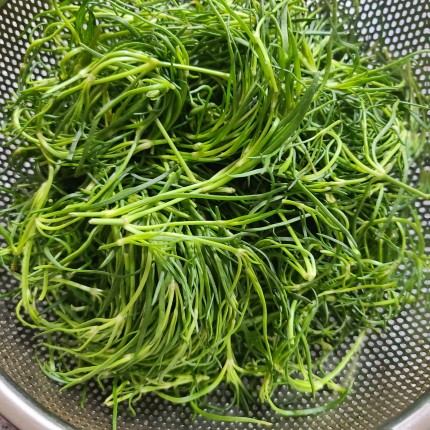 세발나물을 갯 나물이라고도 하며 뿌리째 캐서 끓는 물에 살짝 데친 후에 된장과 갖은양념에 무쳐 먹는 나물이죠.