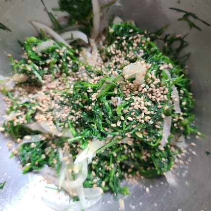 들기름 1작은술, 깨소금 1작은술 넣어서 마무리합니다.
