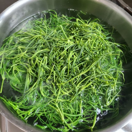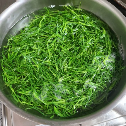 세발나물을 살짝 1분 이내로 데쳐줍니다.