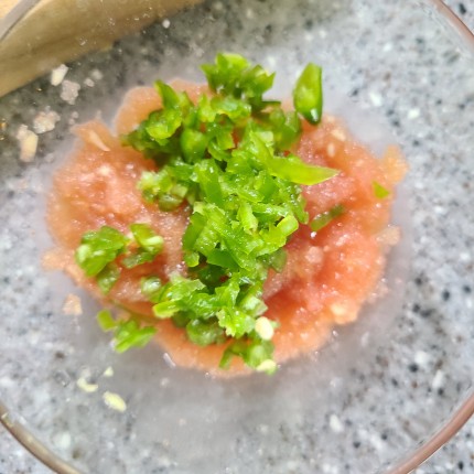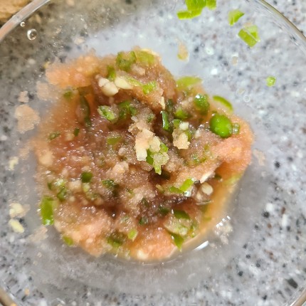 그리고, 청양고추 잘게 다져서 넣고 섞어줍니다.