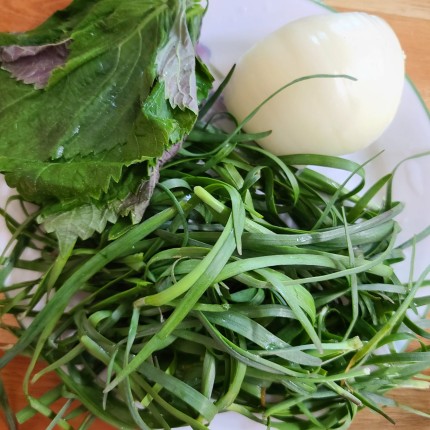 양파, 깻잎, 부추, 들깻가루 2큰술, 들기름 1큰술