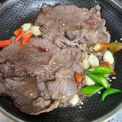 그리고 청양고추 2~3개 썰어 넣어서 구우면 스테이크에 매운맛이 배여 들어 정말 신세계 맛!