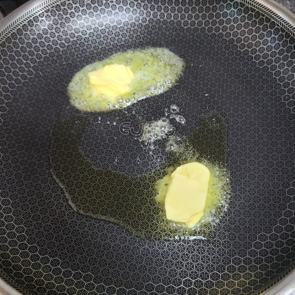 팬에 올리브 오일 두르고 버터 1큰술 넣어서 녹여줍니다.