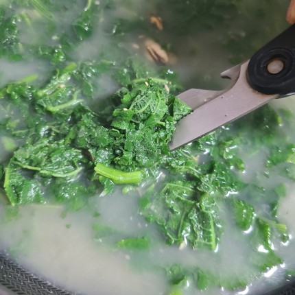 끓어오르면 호박잎 넣고
