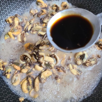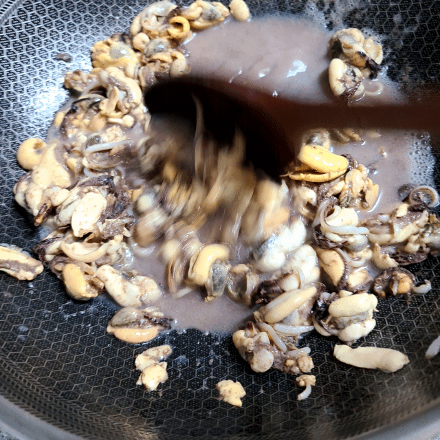 홍합에서 국물이 나오도록 볶아줍니다.