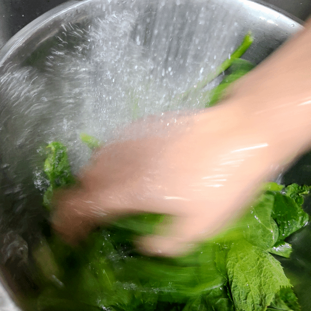 호박잎은 치대어 깨끗이 씻어 줍니다.