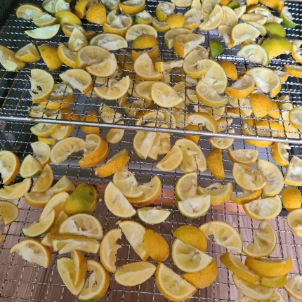 탱자를 식품 건조기에서 10시간 정도 말려 줍니다.
