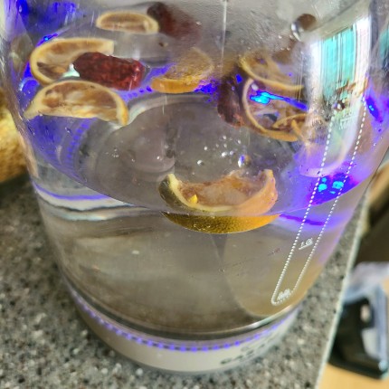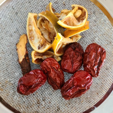 말린 탱자, 대추, 감초를 물에 헹궈서 물 1.2L에 넣어서 끓여줍니다.