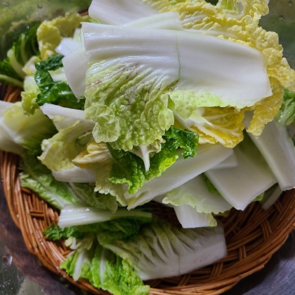 알배추 먹기 좋게 썰어줍니다.