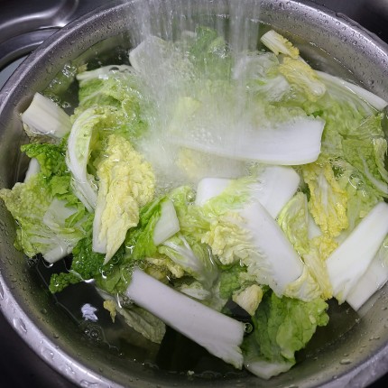절인 알배추는 씻어서 물기를 제거합니다.