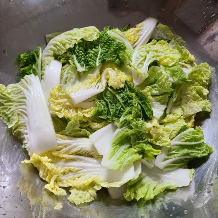 다듬은 알배추 씻어서 소금 뿌려 30분 정도 절여 주세요.