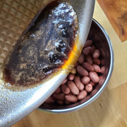 구운 땅콩에 양념장 부어서 섞어줍니다.